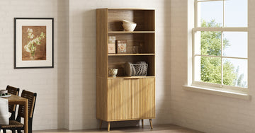 Thene Mid-Century-Modern Fluted Bookcase with Open Shelf