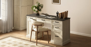 Maren Farmhouse Large Storage Home Office Desk with Drawers