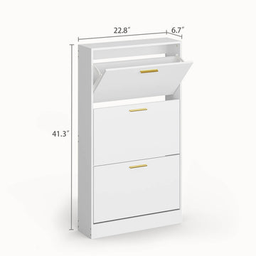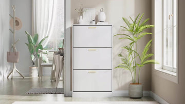Say goodbye to cluttered entryways and scattered shoes, hello to a modern minimalist shoe cabinet that delivers style and storage. With its clean white finish, soft gold handles, and sleek silhouette, this entryway shoe storage cabinet keeps your space calm and organized.