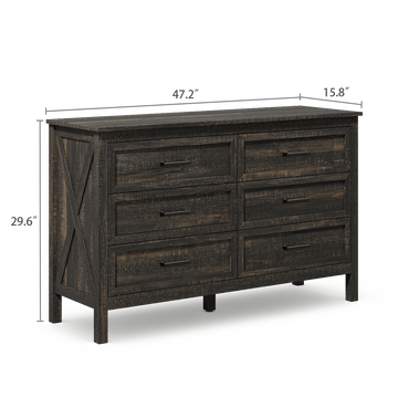 Dorien Rustic Farmhouse Black 6-Drawer Dresser