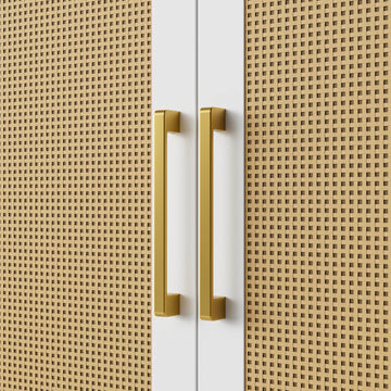 This modern rattan sideboardTV stand features natural cane doors, gold handles, and a clean silhouette—available in white. The blend of organic texture and sleek design fits perfectly in boho or modern interiors.