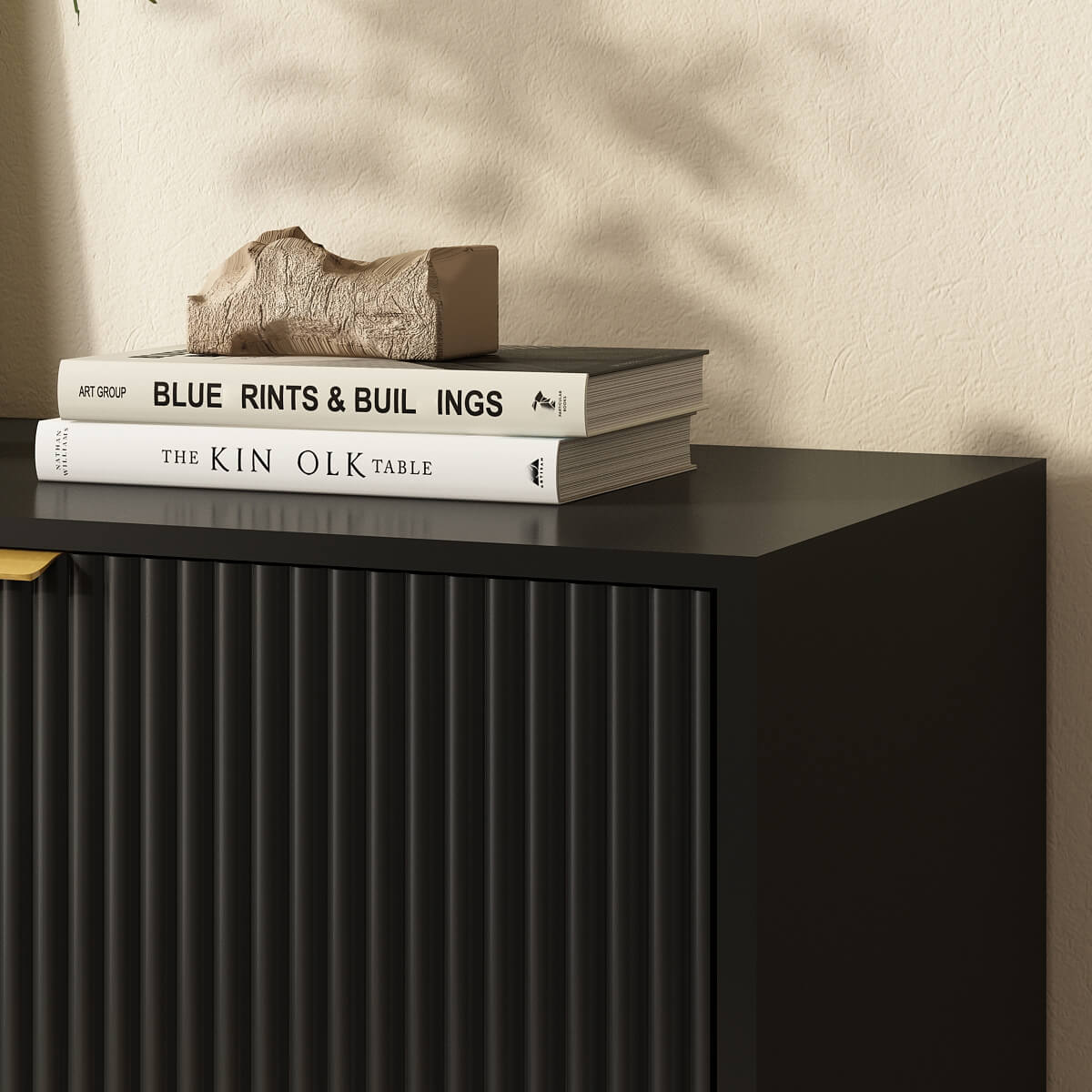 Luma Modern Fluted 3-Door Black Sideboard/TV Stand Cabinet