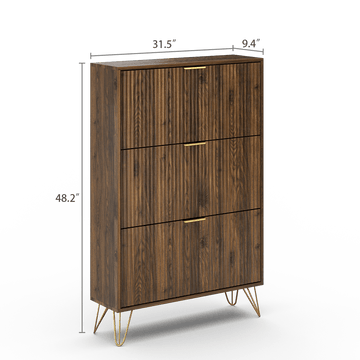 Luma Modern Fluted 3-Tier Vertical Walnut Shoe Cabinet