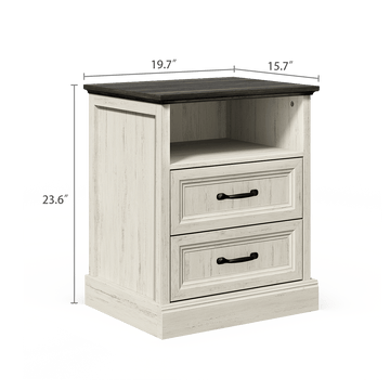 Add clean, modern charm to your bedroom with the Riumlore Rustic White Nightstand. With a weathered white finish, black handles, and smooth metal glides, this modern nightstand offers practical bedside storage for your essentials. The design suits both bedrooms and living spaces, blending style and function with ease.