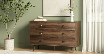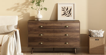 Bring mid-century style and warm walnut tones to your home with the Riumlore 6-drawer dresser. With clean lines and antique brass cup pulls, this mid-century modern dresser adds timeless charm to any bedroom or living room. The rich wood grain finish offers warmth, while the durable build ensures everyday use.