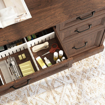 With multiple drawers and a built-in cabinet, the Rowen Desk offers convenient storage for documents, office supplies, and everyday tech accessories, all within easy reach. Crafted with a sturdy structure and smooth-glide hardware, it’s built for durability while maintaining a calm, stylish, and functional workspace.