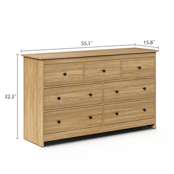 This 7-drawer oak dresser adds rustic charm and practical storage to any bedroom or living room. With its natural wood grain and sturdy build, it keeps clothing, linens, and essentials organized while enhancing your space with timeless warmth.