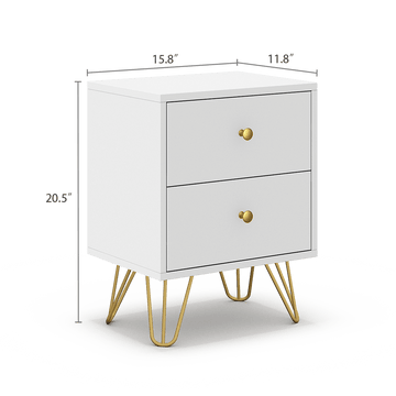 Bring calm and subtle elegance to your bedroom with the Riumlore "Sana" nightstand. This modern bedside table features a clean white matte finish, minimalist hairpin legs, and two spacious drawers for easy bedroom storage. The top surface is perfect for a lamp, book, or cup of coffee.