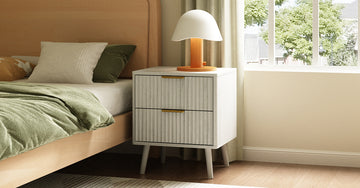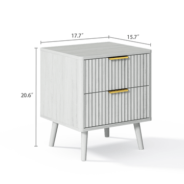 Corin Mid-Century-Modern Fluted 2-Drawer White Nightstand