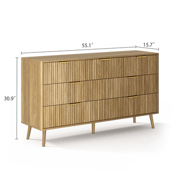 Clean lines and Nordic warmth come together in the Riumlore Fluted 7-Drawer Dresser. With its reeded oak finish, brushed gold pulls, and minimalist silhouette, this Scandinavian-inspired dresser adds soft texture and function to any modern bedroom.