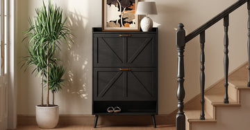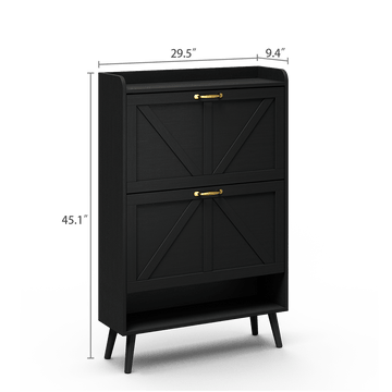 Xyla Farmhouse 2-Tier Vertical Black Shoe Cabinet