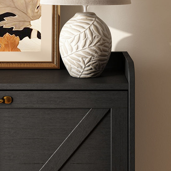 Brighten your home with the Xyla Shoe Cabinet in classic black, a perfect mix of farmhouse texture and modern simplicity. The signature X-pattern doors and soft tones bring a light, airy feel to your space.