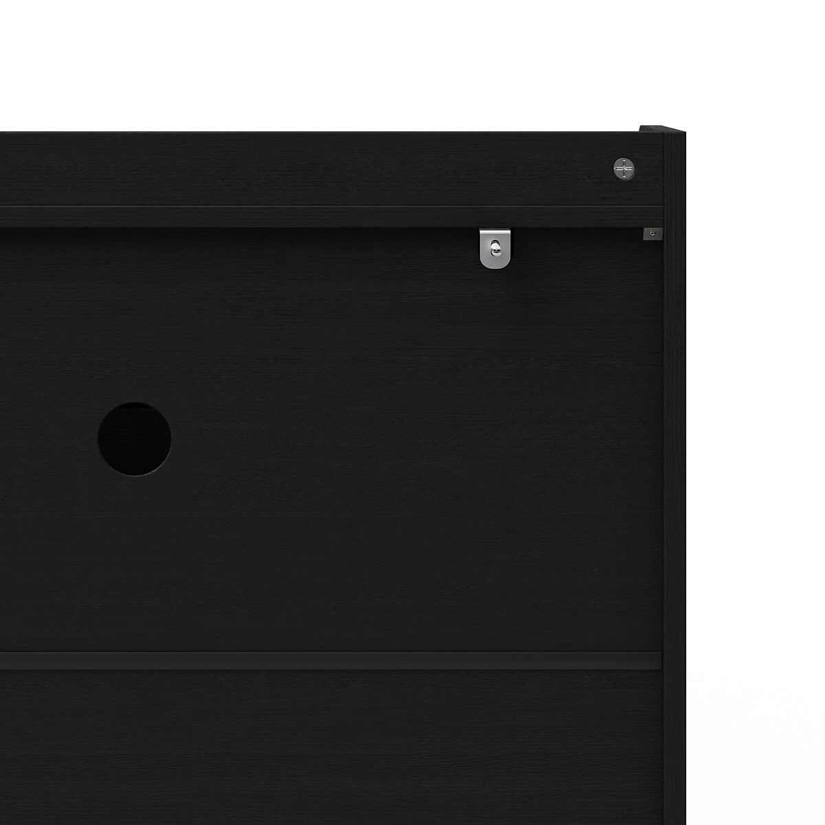 Ideal for entryways or living areas, it offers smart shoe organization with two compartments and an open shelf. Crafted from sturdy engineered wood with sleek metal handles, it adds effortless charm and everyday function.