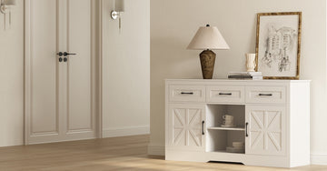 Bring classic farmhouse charm to your dining or living space with this versatile white sideboard. Crafted with clean lines and barn-door design, it offers a perfect blend of rustic warmth and modern function, ideal for storing dinnerware, serving pieces, or everyday essentials.