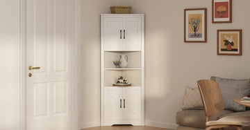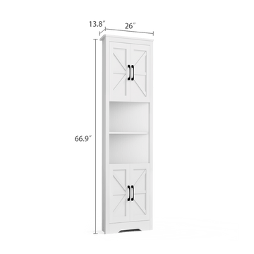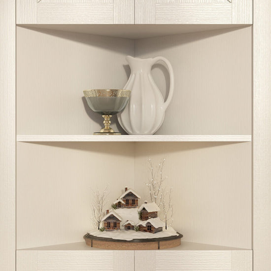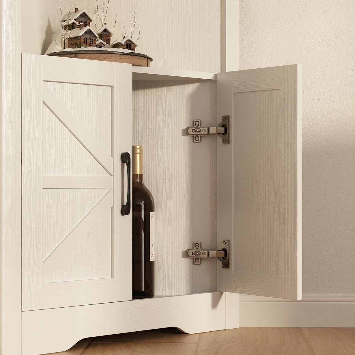 The Riumlore farmhouse-style corner cabinet offers smart storage in a space-saving design—perfect for bedrooms, living rooms, or cozy nooks. With a soft white finish and barn-style doors, it brings warmth and charm to any corner.